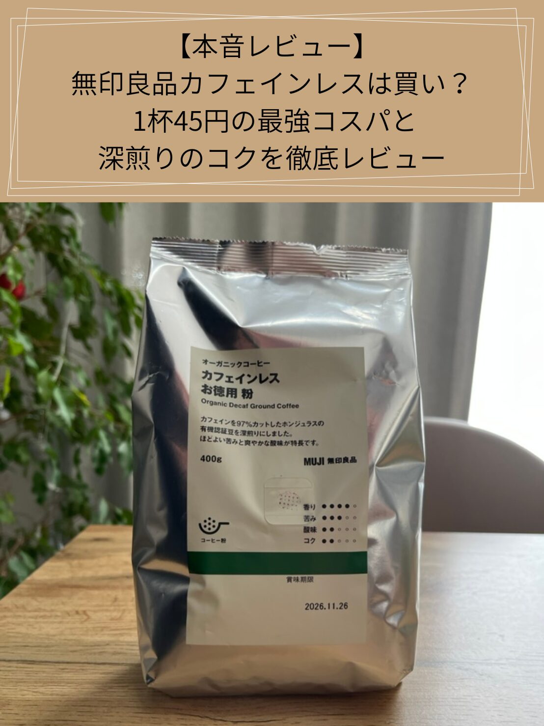 【本音レビュー】無印良品カフェインレスは買い?1杯45円の最強コスパと深煎りのコクを徹底レビュー